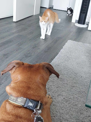 UsuńDla mnie wazne jest, zeby wszystkie zwierzeta w rodzinie sie znaly, bo w razie czego, gdyby musialy przebywac pod jednym dachem, zeby nie popadly w panike. Zreszta do opieki nad kotelkami chetniej poszlabym z Toyka niz sama, niech ona tez ma swoja przyjemnosc ze spaceru.
